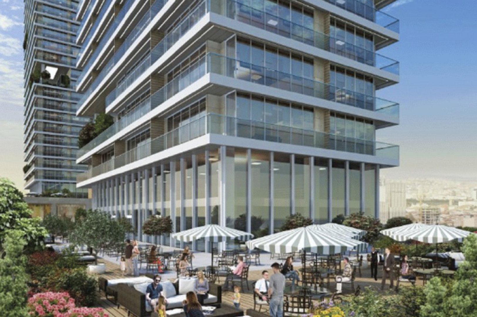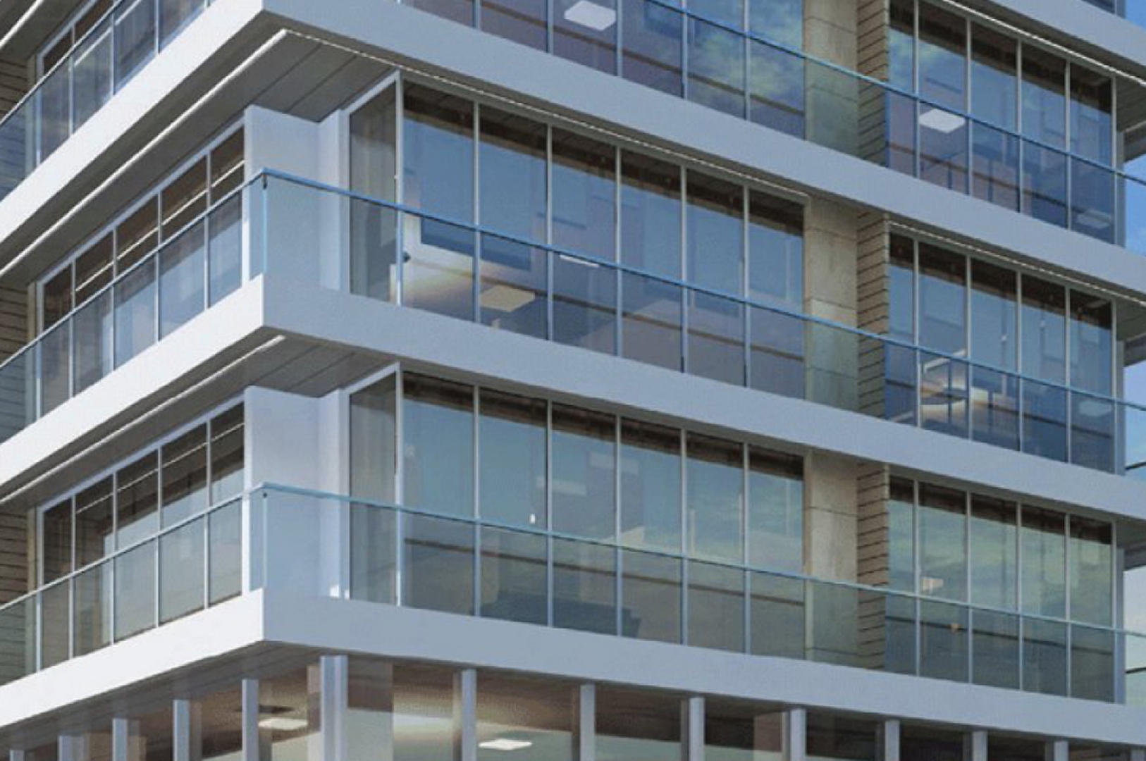 درابزينات من الفولاذ المقاوم للصدأ والزجاج مطبقة على شرفات الواجهة الخارجية لمكاتب أرما كوله.