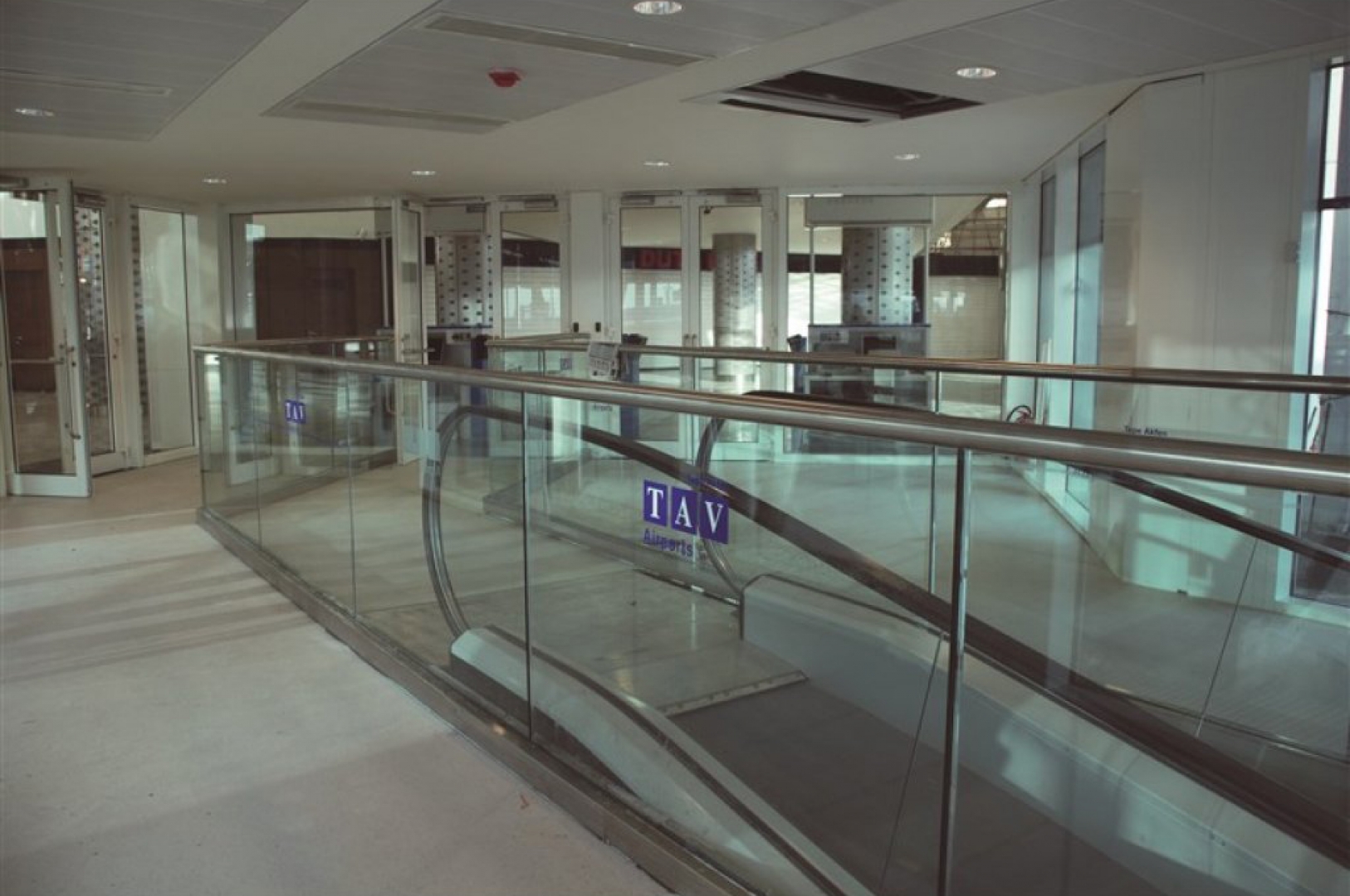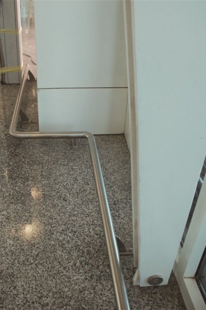 ▷ Glass partitions at exit doors, glass railings, and stainless steel sheet skirting.
