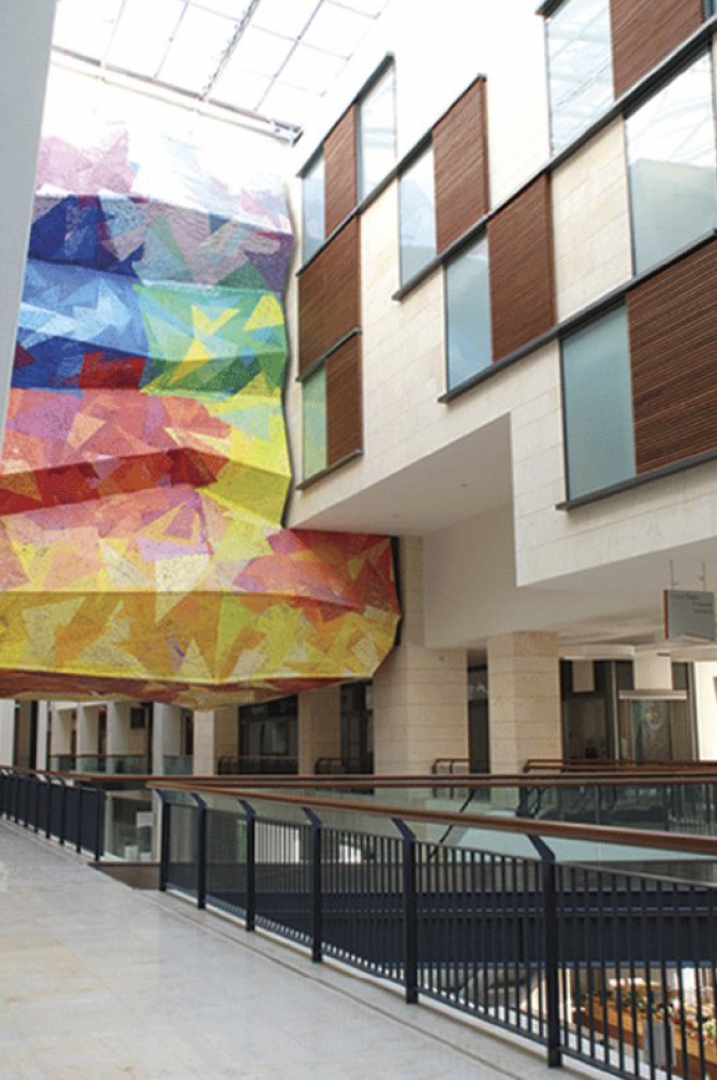 – Gordion alışveriş merkezinde dış cephesinde uygulanan, özel tasarım eva lamine desenli cam ve genişletilmiş perfore metal kaplamalar.