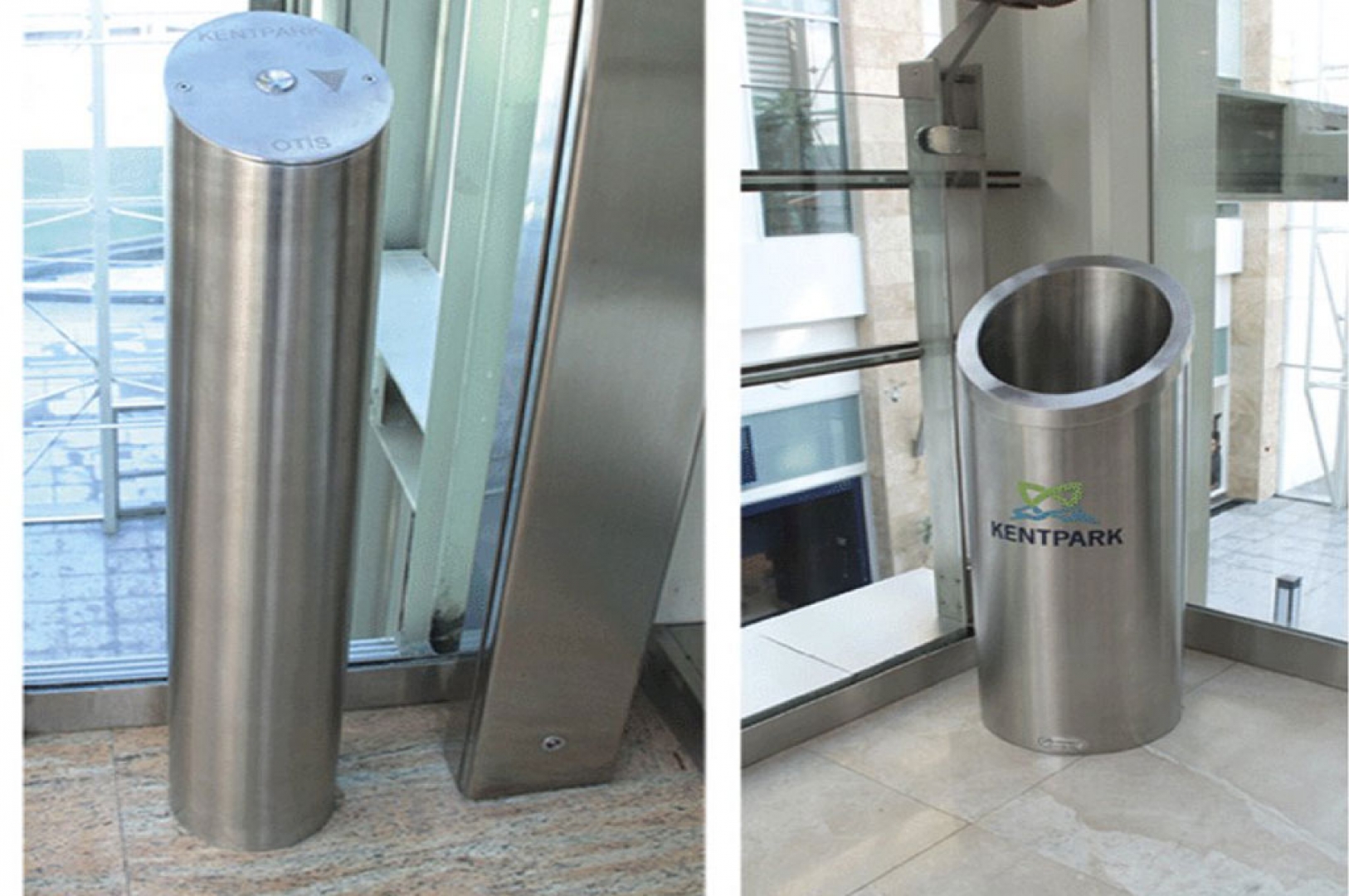 – Stainless steel elevator call button pedestal.