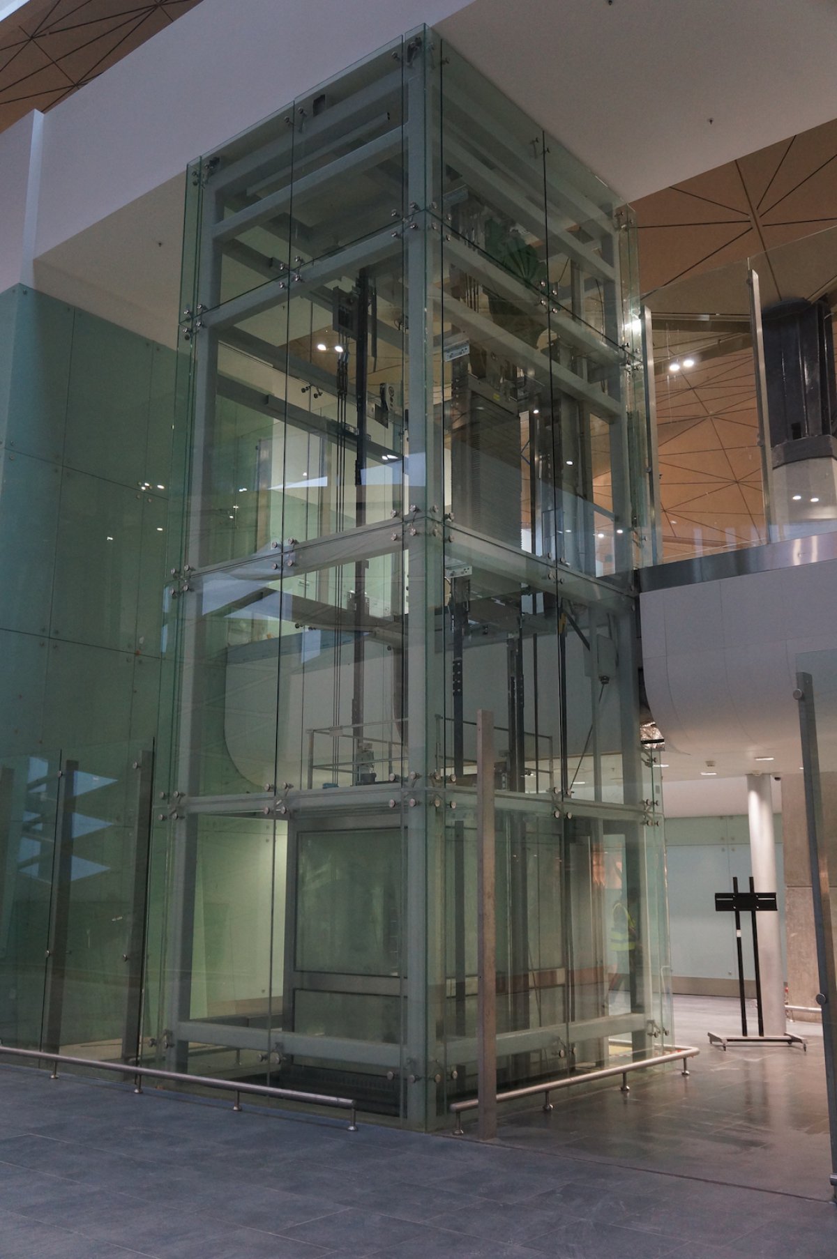 Spider fittings securely fix the glass panels, ensuring structural integrity and safety.