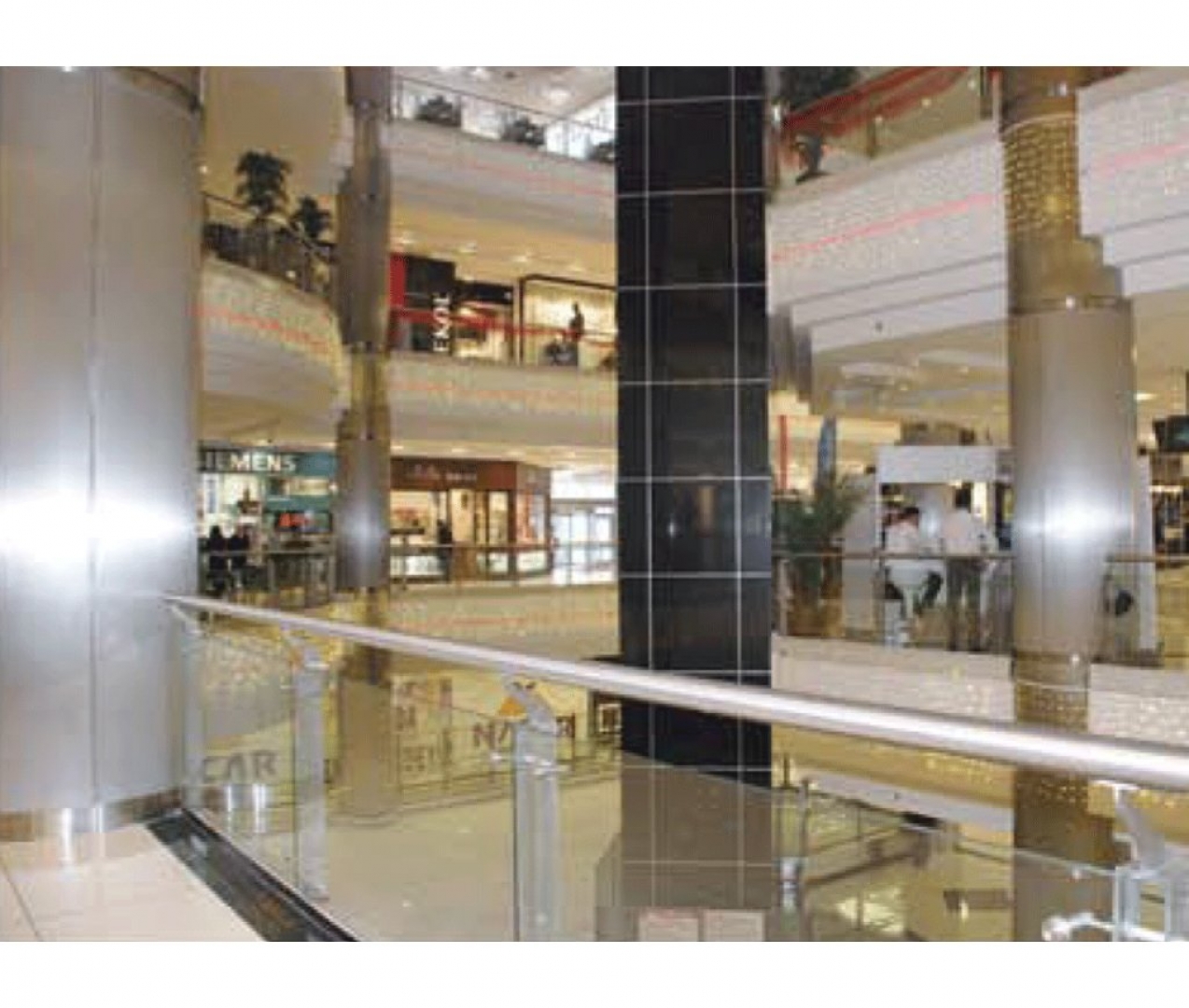 – Acity alışveriş merkezinde iç cephede uygulanan paslanmaz korkuluklar ve paslanmaz kolon kaplamalar.