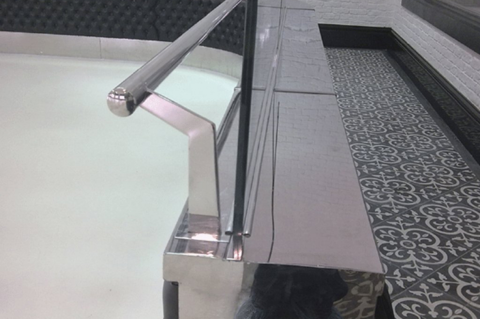 ▷ Azerbaycan - Bakü Yeşil Vadi Konakları buz pistinde, paslanmaz çelik ve camdan oluşan korkuluklar ve paslanmaz kaplamalar.